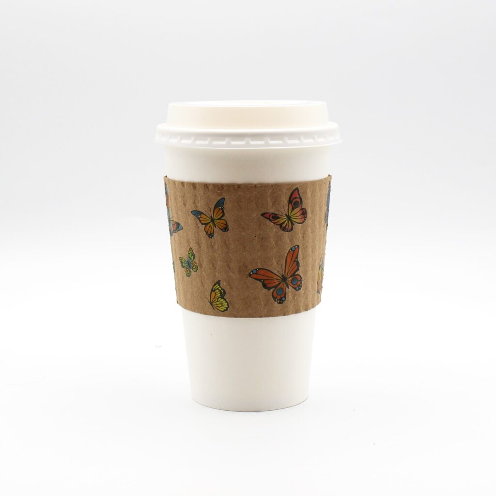 Transform your coffee service with Butterfly Breeze coffee sleeves. These limited-edition Spring/Summer sleeves showcase a stunning butterfly design beautifully printed in full color on kraft paperboard. Perfect for iced or hot beverages, these sleeves combine charm and functionality, ensuring your customers can enjoy their drinks with comfort and ease. Celebrate the beauty of the season while aligning with eco-conscious practices.